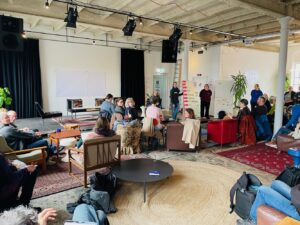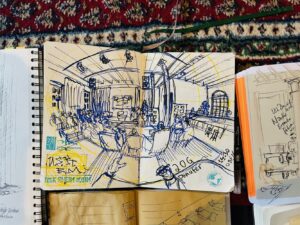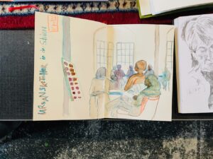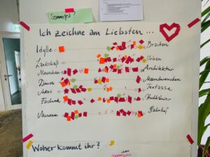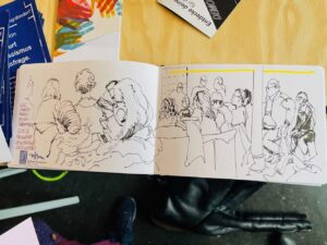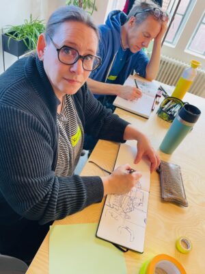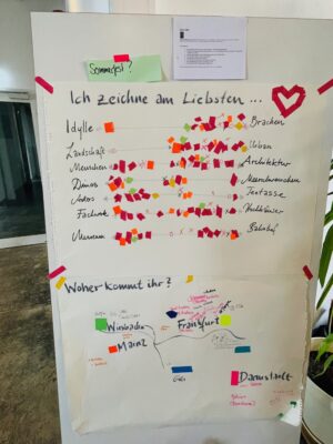 Es war nicht nur ein Planungstreffen, sondern auch ein Zeichentreffen an und in dem besonderen „dritten Ort“. Vielen Dank an 2og:dondorfer, dass wir den Gemeinschaftsraum nutzen durften unentgeltlich und ohne Konsumzwang uns in dieser so entspannten Umgebung in großer Gruppe treffen durften!
