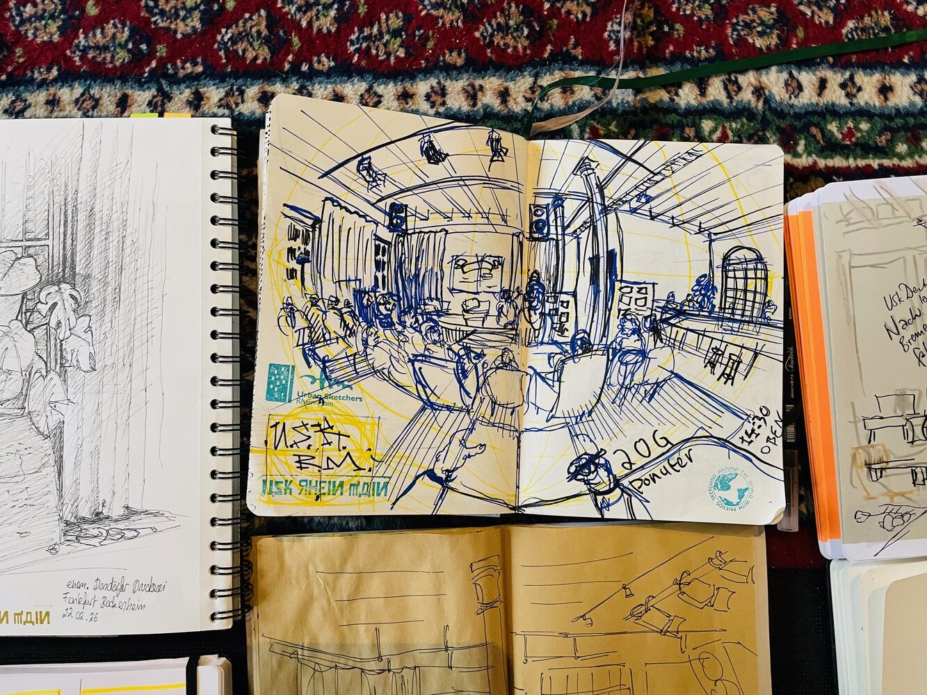 „Fröhlich sein!“ heißt die aktuelle Ausstellung in der Schirn – Fröhlich sein beim Urban Sketching mit USk Rhein-Main! Viel Spaß!